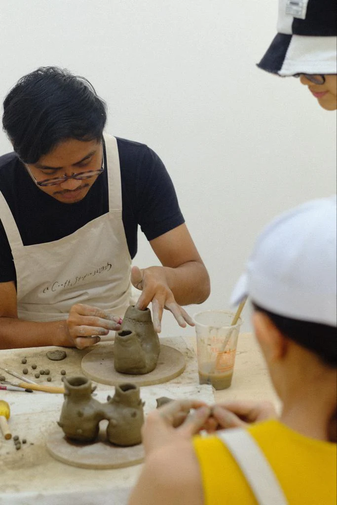 You’ll be introduced to the basic process of pottery making and learn a variety of hand-building techniques. An opportunity to try your hand from pinch pottery to slab building and coiling. Where the following steps “trimming and glazing/ coloring” will be done by our studio.